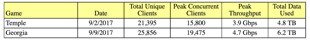By our unofficial records, the 6.2 TB mark is the highest Wi-Fi traffic number recorded for a single-day college event. The previous high mark was a 5.7 TB total reported by Texas A&M for a 2015 season game against Alabama. (Any other big marks out there that we don’t know about, please let us know!)