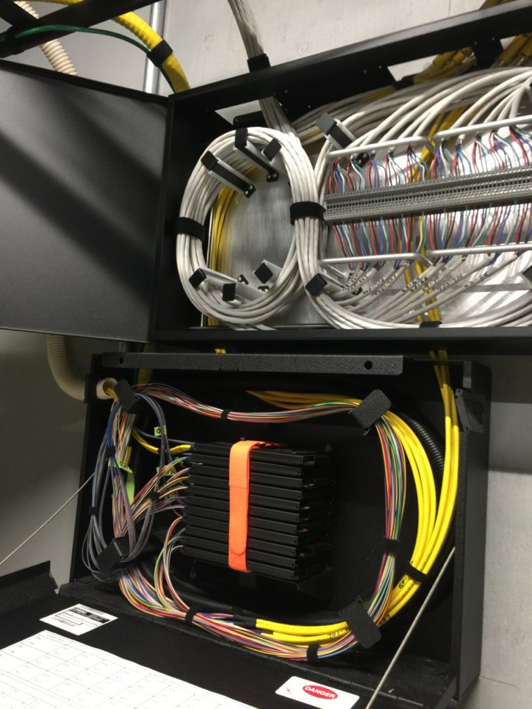 As part of the overall fiber network design, AmpThink’s Anderson said the company maximized capacity throughout the building, with hundreds of extra fiber strands available to support future capacity needs. By using optical fiber with hundreds of strands wound together – including some stretches with 864 different fiber strands inside a single cable – AmpThink actually saved time, money and space by preventing the need for additional infrastructure or future cable pulls.